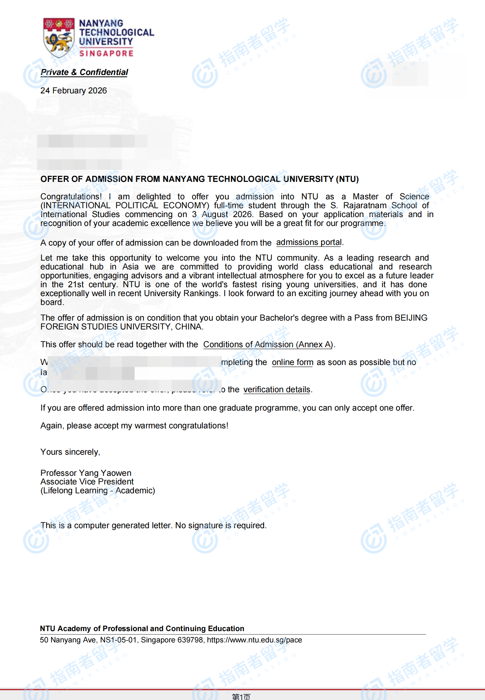 南洋理工大學(xué)國際政治經(jīng)濟學(xué)理學(xué)碩士研究生offer一枚