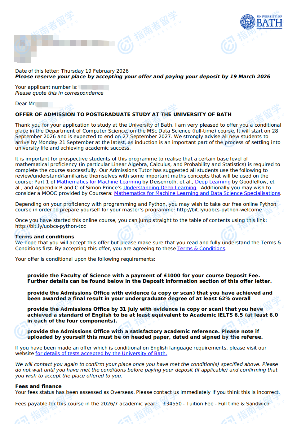 巴斯大學(xué)數(shù)據(jù)科學(xué)理學(xué)碩士研究生offer一枚