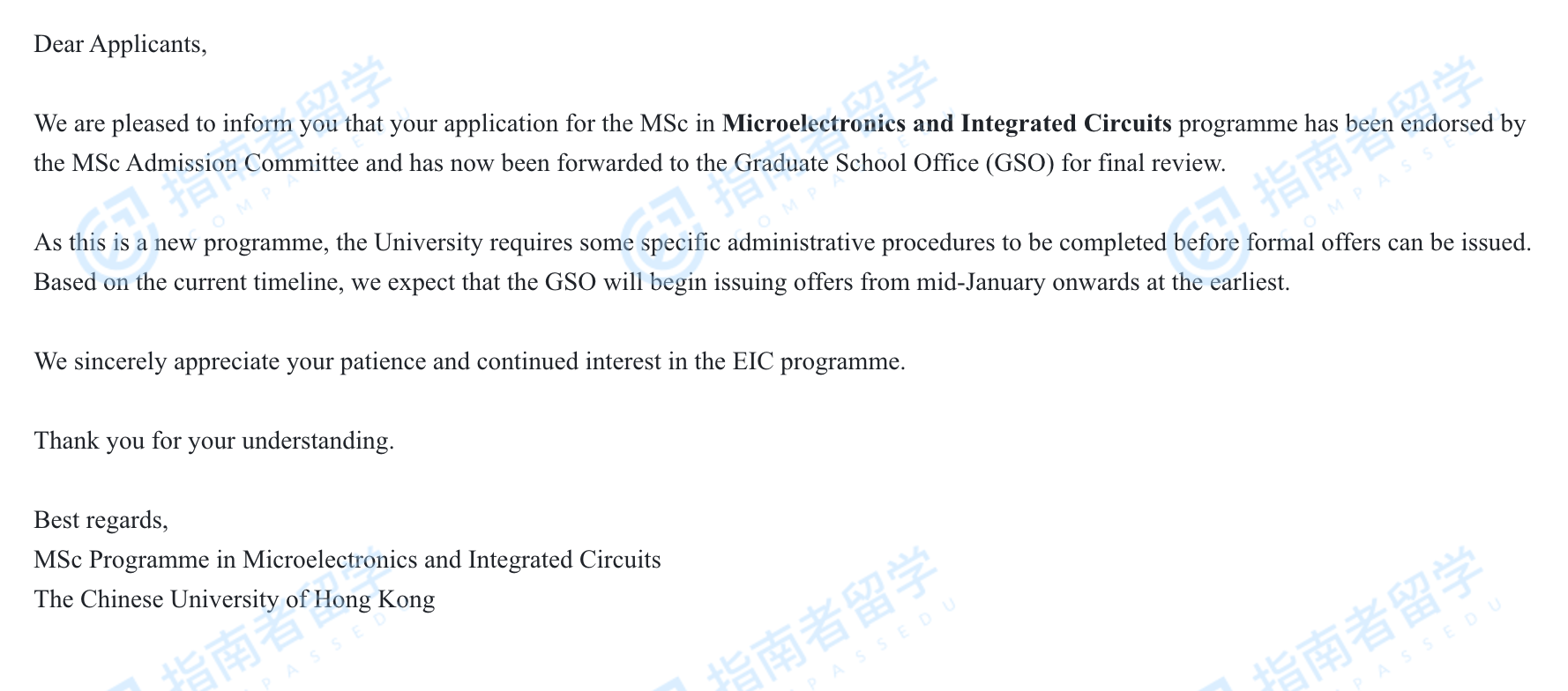 香港中文大學(xué)微電子與集成電路理學(xué)碩士研究生offer一枚
