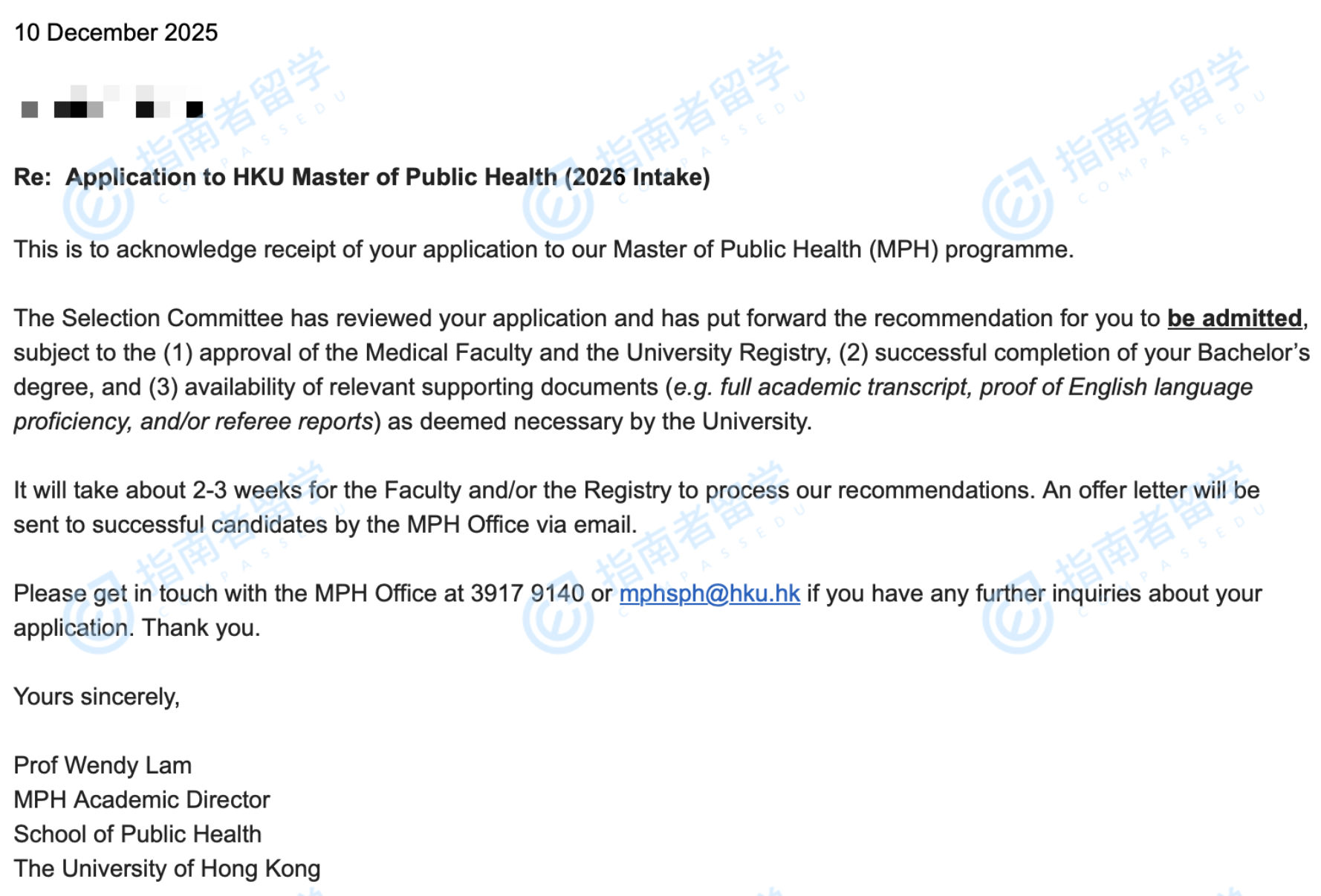 香港大學(xué)公共衛(wèi)生碩士(流行病學(xué)與生物統(tǒng)計(jì)學(xué))研究生offer一枚