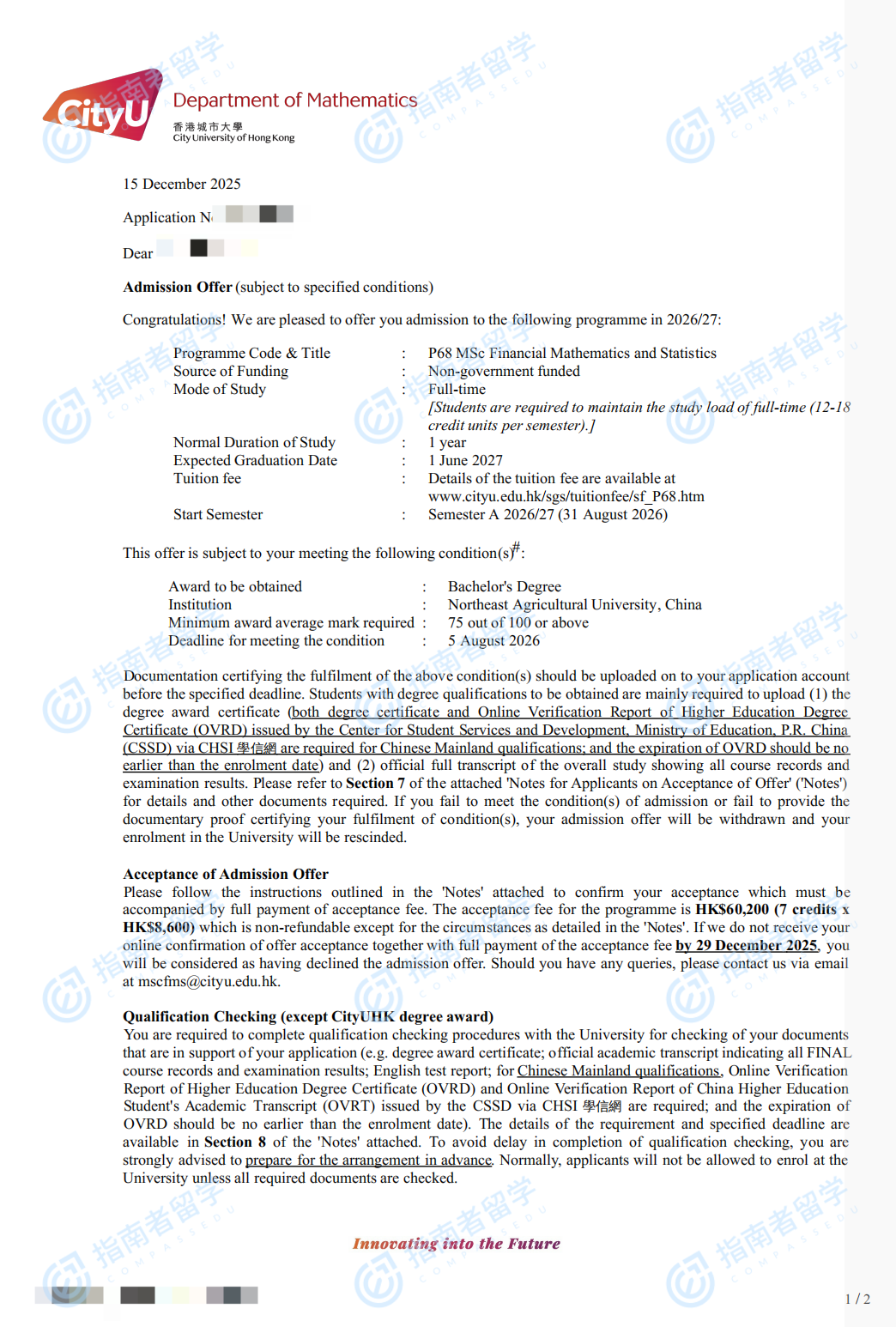香港城市大學(xué)金融數(shù)學(xué)與統(tǒng)計理學(xué)碩士研究生offer一枚