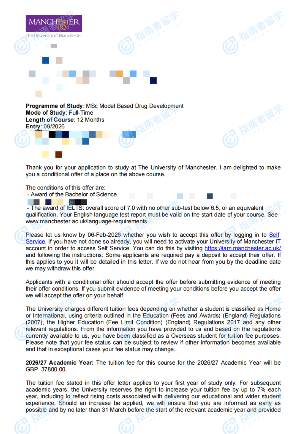 曼徹斯特大學(xué)基于模型的藥物開(kāi)發(fā)理學(xué)碩士(藥代動(dòng)力學(xué)與藥效學(xué)建模)研究生offer一枚